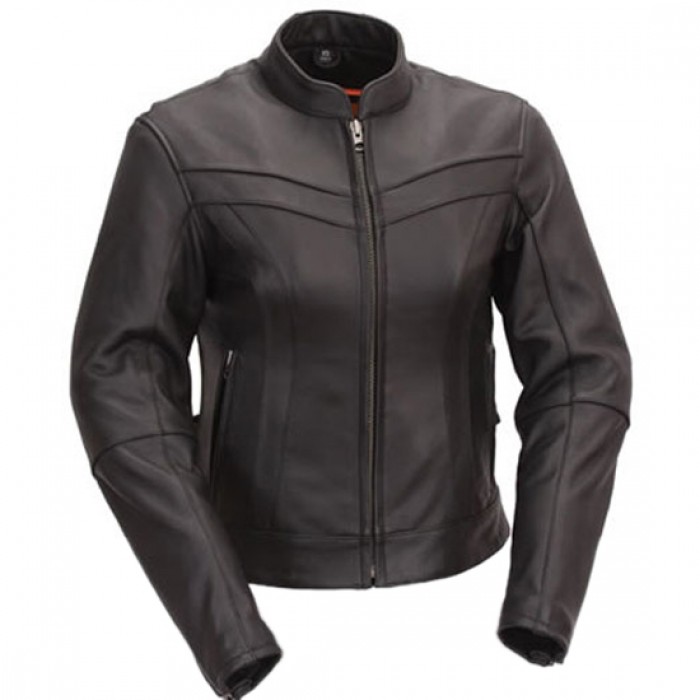 Women Black Leather Touring Motorcycle Jacket with Mandarin Collar Soft Milled Cowhide 1.1-1.3mm leather